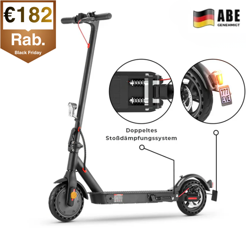 Unsere E-Scooter haben bereits Verkehrstests bestanden und sind zugelassen. Zudem besitzen unsere Elektroroller eine allgemeine Betriebserlaubnis und entsprechen den geltenden Sicherheitsstandards. Dazu gehören Lenkung, Bremsen, Reifen, Beleuchtung und andere sicherheitsrelevante Komponenten des Rollers.