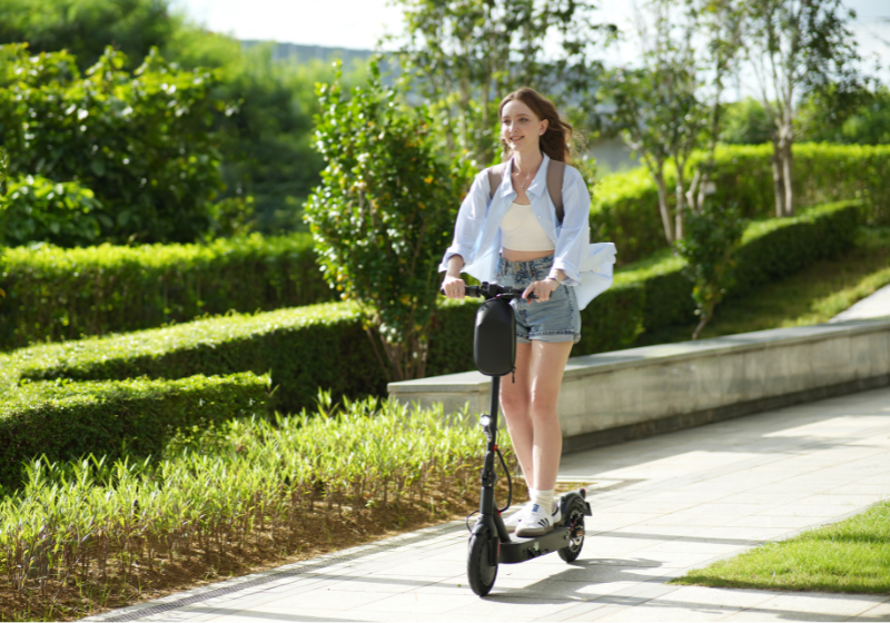 Der Elektroroller E9 besteht aus einer Aluminiumlegierung in Luftfahrtqualität und der Ladeanschluss ist mit Gummi abgedichtet. Das Gehäuse ist IP54 wasserdicht und luftdicht, sodass Sie auch bei Regenwetter normal fahren können.