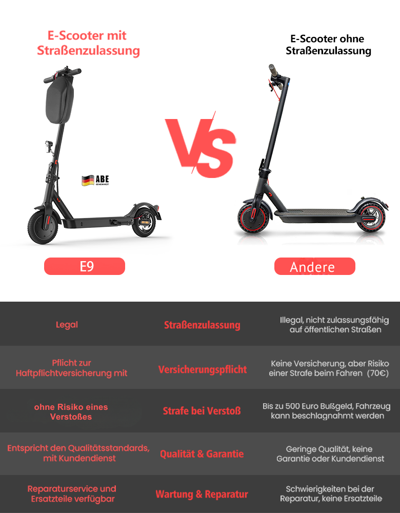 ▲Der Scooter mit Elektroantrieb verfügt über die notwendige Straßenzulassung und ist damit LEGAL und sicher auf Deutschlands Straßen unterwegs.Diesem Artikel liegt eine allgemeine Betriebserlaubnis (ABE) bei.Bitte lassen Sie den Artikel versichern(Die Seriennummer befindet sich auf der Seite des Fahrzeugs).Auf dem hinteren Schutzblech des E-Scooter muss eine gültige Versicherungsplakette aufgeklebt sein. Ein Führerschein wird nicht benötigt.Wenn Sie Fragen haben, können Sie sich gerne an uns wenden.