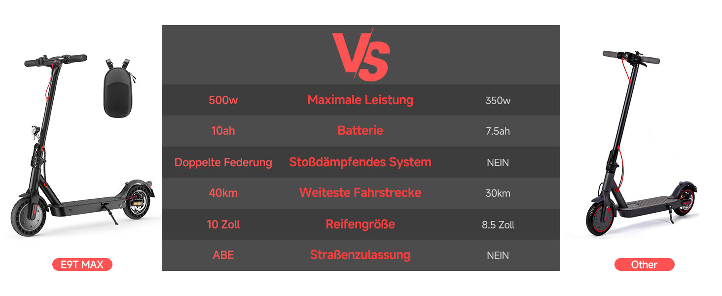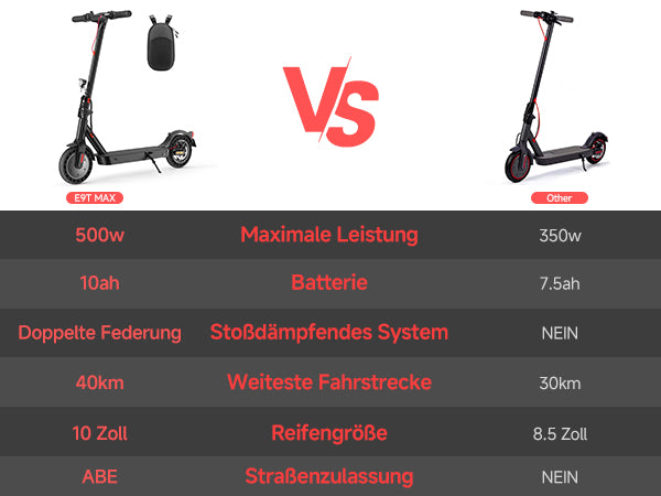 E9TMAX Vollständig konform mit deutschen Verkehrsvorschriften, mit TÜV ABE-Zulassung. Sorgenfrei und legal unterwegs.