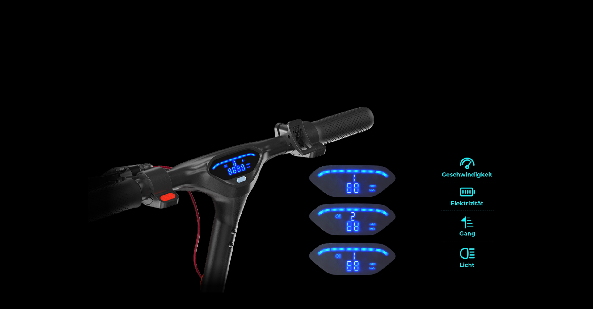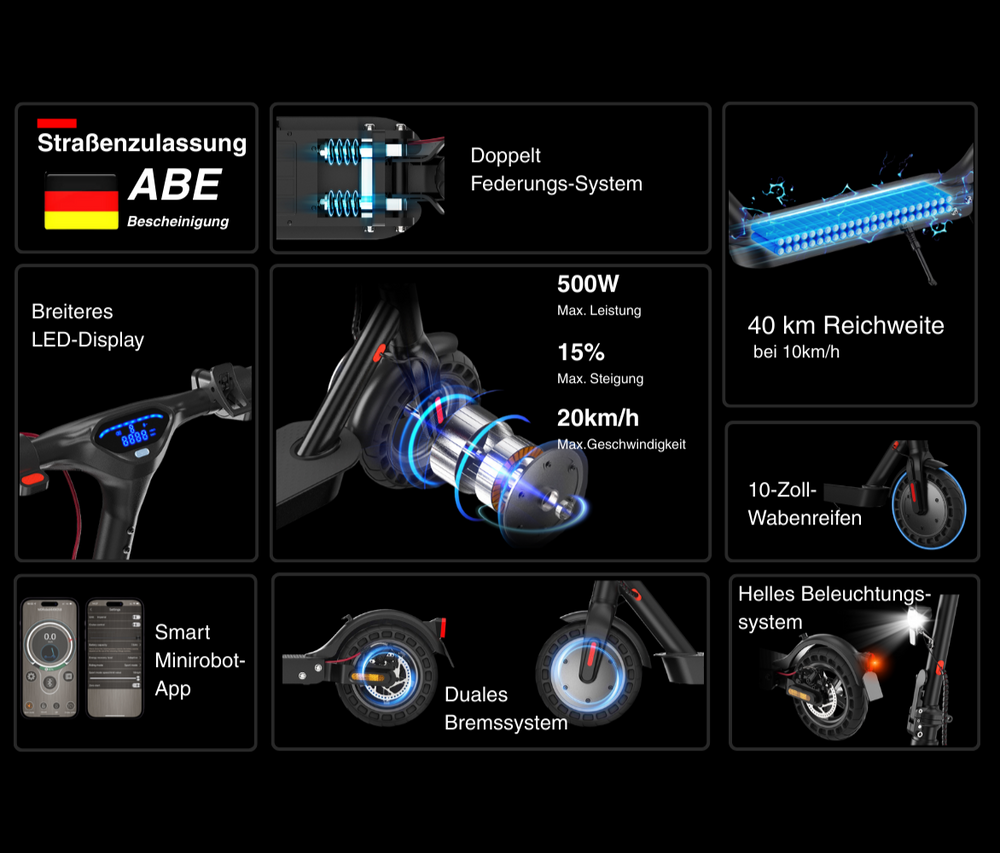 E9TMAX Vollständig konform mit deutschen Verkehrsvorschriften, mit TÜV ABE-Zulassung. Sorgenfrei und legal unterwegs.