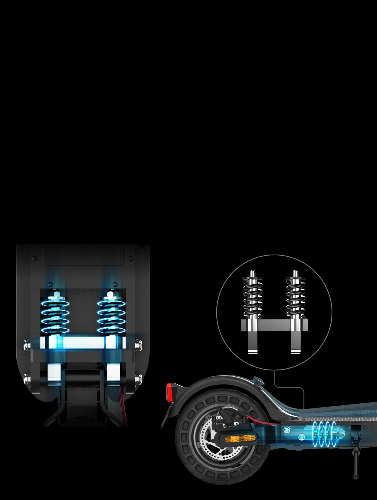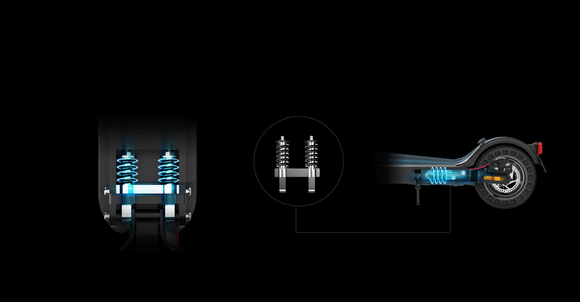 Versteckte Doppelfederung hinten fur ein komfortables und asthetisches Fahrerlebnis.