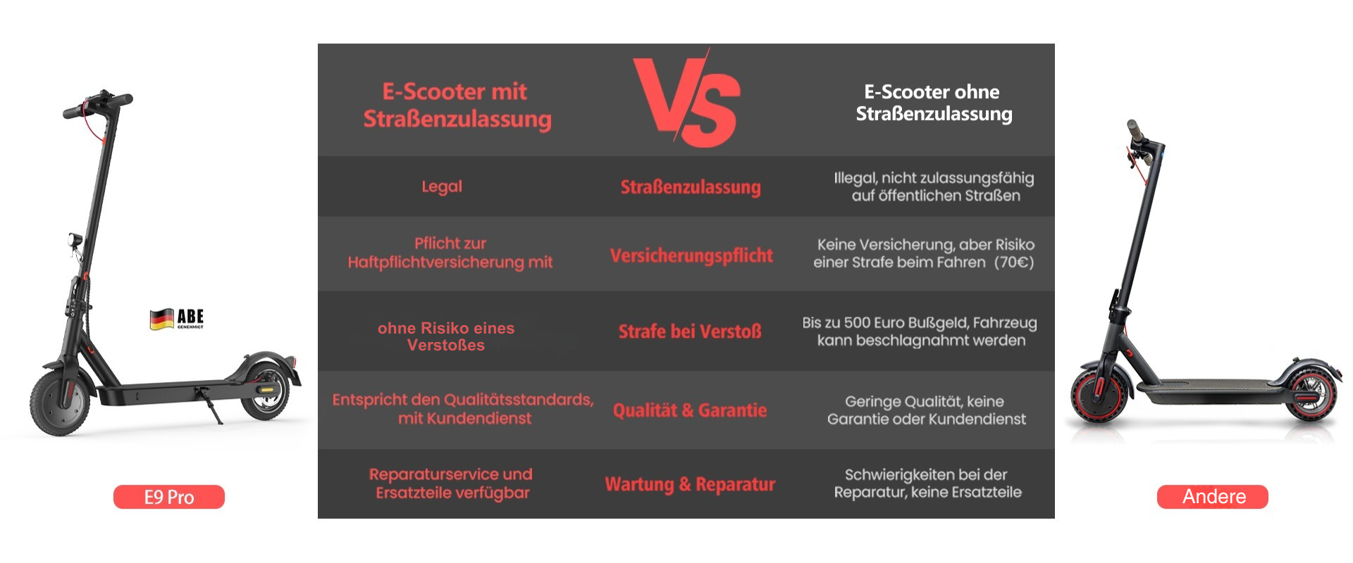 - Versicherungsplakatte auf e scooter aufkleben, Versicherungsschein mitnehmen und losfahren