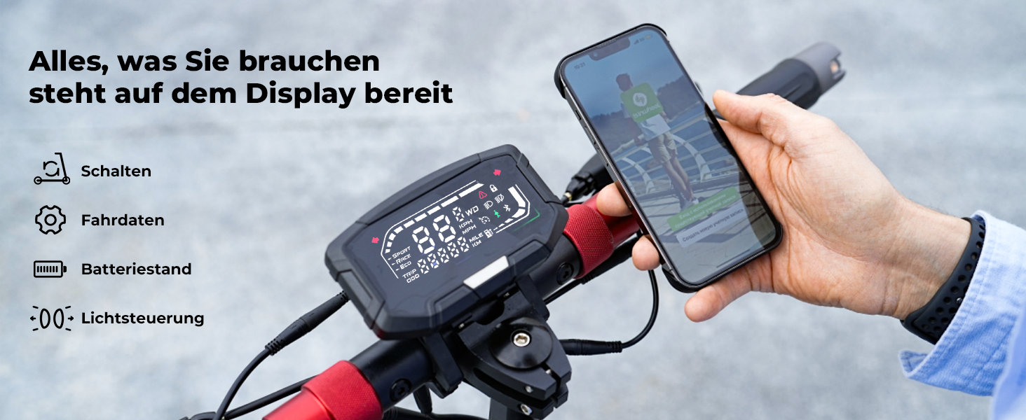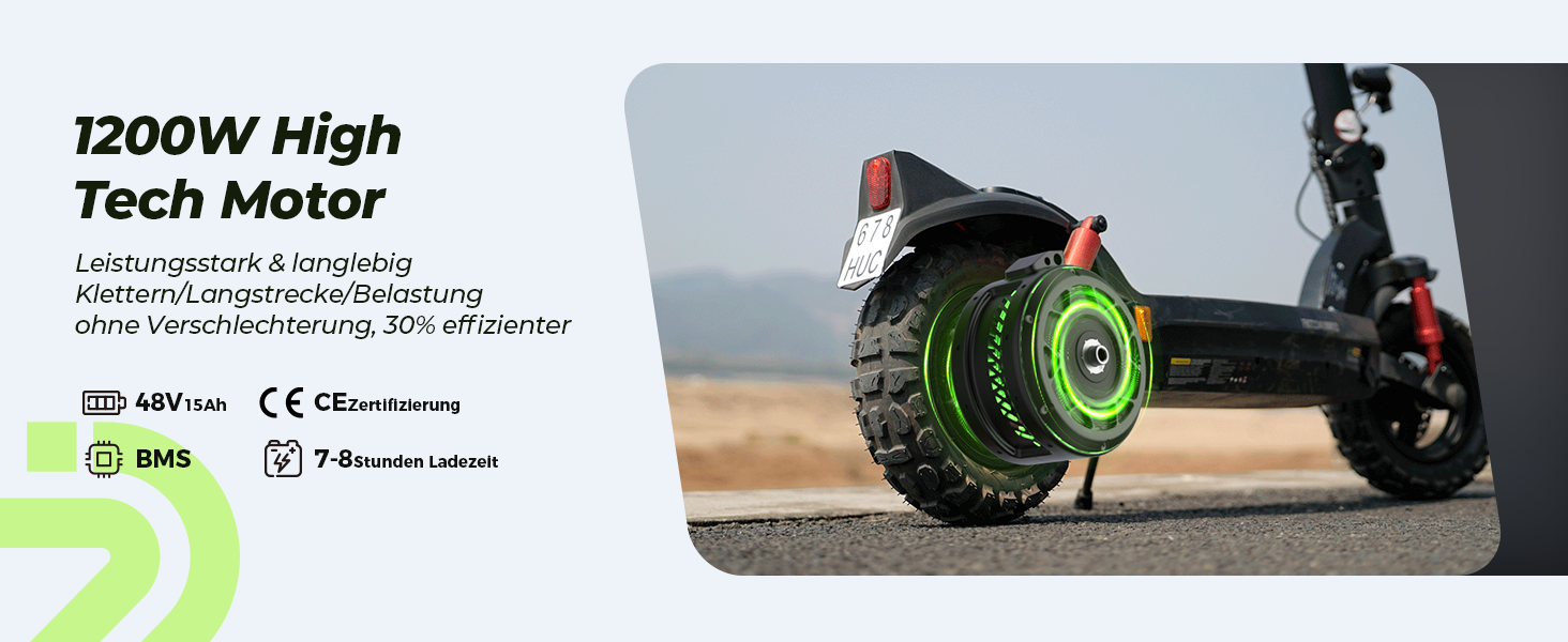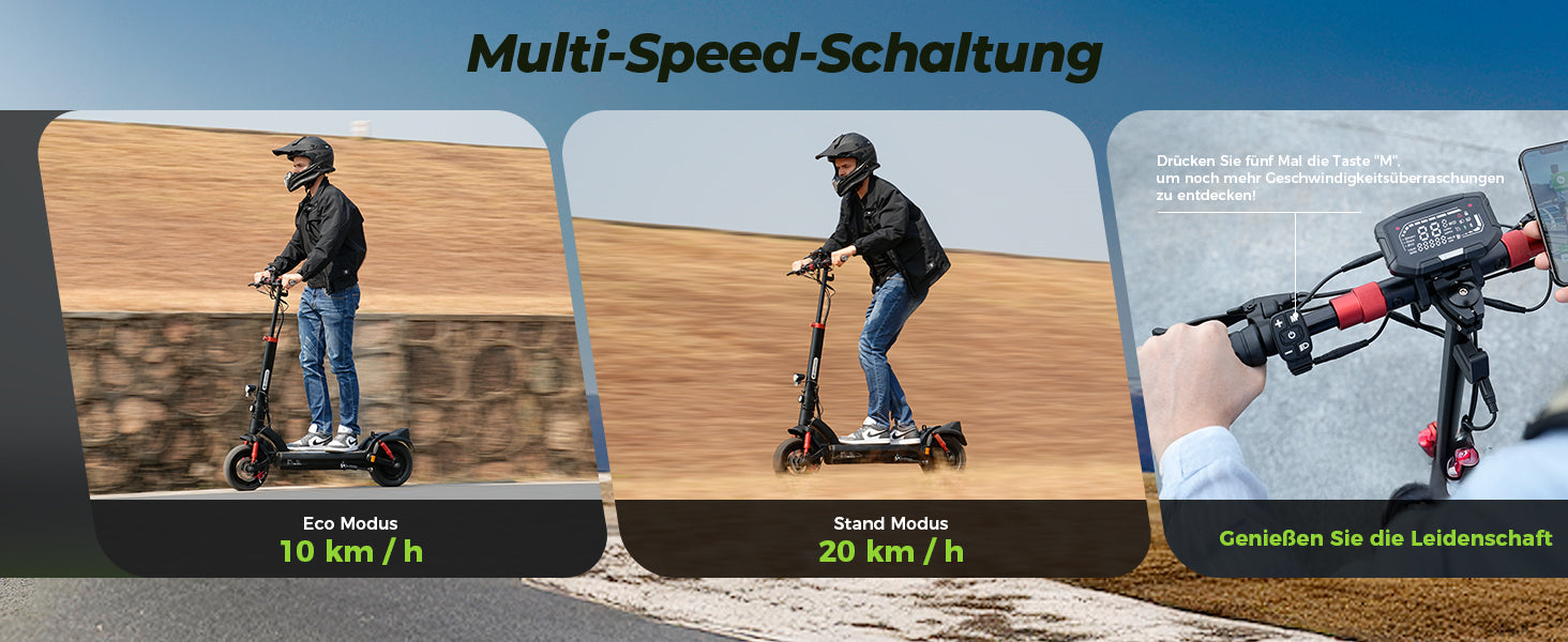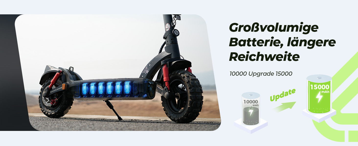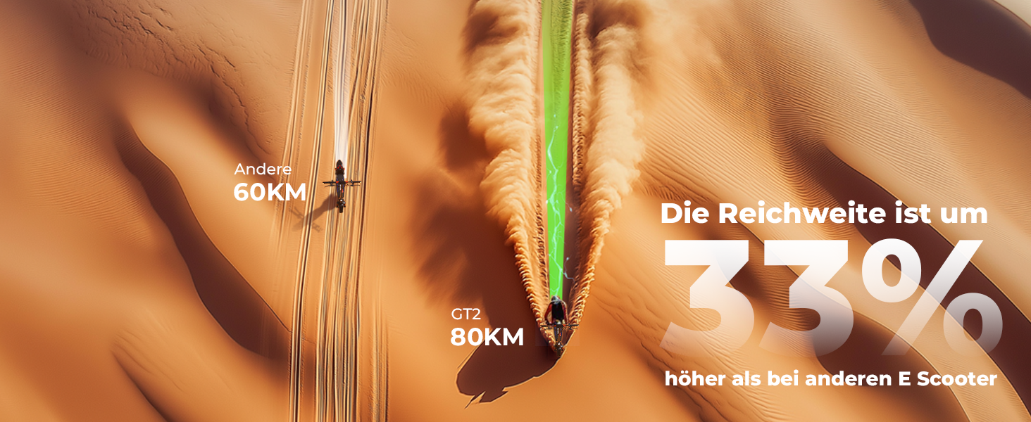 ▲Maximale Geschwindigkeit und Reichweite je nach Fahrstil und Gelände.