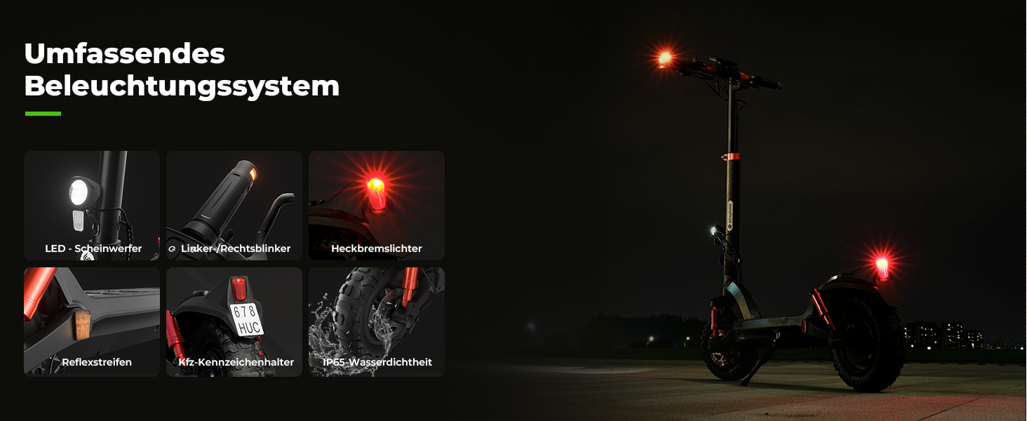 IP65 wasserdicht, kann in Pfützen und beim Regen verwendet werden. |