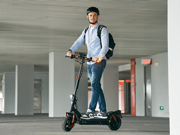 ▲Der Fahrer des GT2 muss mindestens 14 Jahre alt sein.Auf dem hinteren Schutzblech des GT2 moovers muss eine gültige Versicherungsplakette aufgeklebt sein. Ein Führerschein wird nicht benötigt.Eine Schutzausrüstung inklusive Helm wird dringend empfohlen.