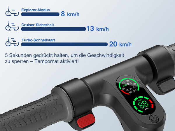 Elektronische Daumenbremse + physische Fußbremse am Hinterradschutzblech