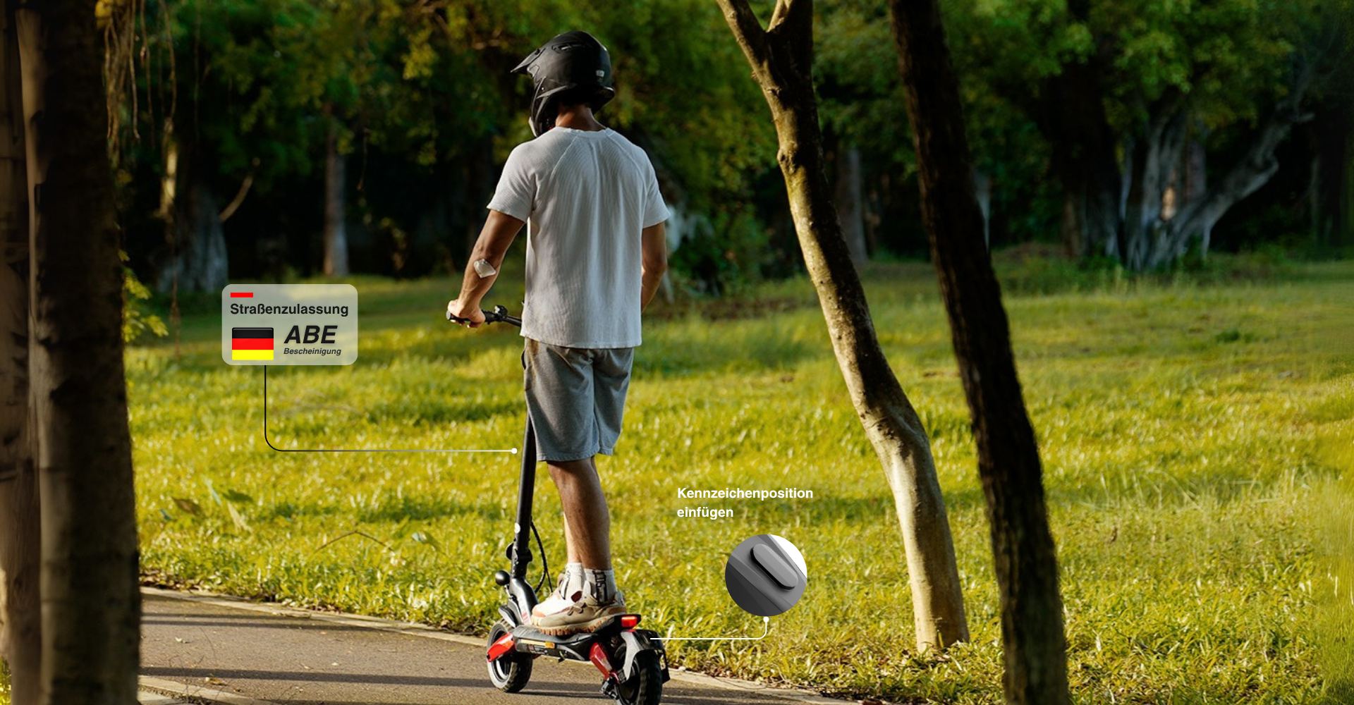 T8 offroad E-Scooter Vollständig konform mit deutschen Verkehrsvorschriften, mit TÜV ABE-Zulassung. Sorgenfrei und legal unterwegs.