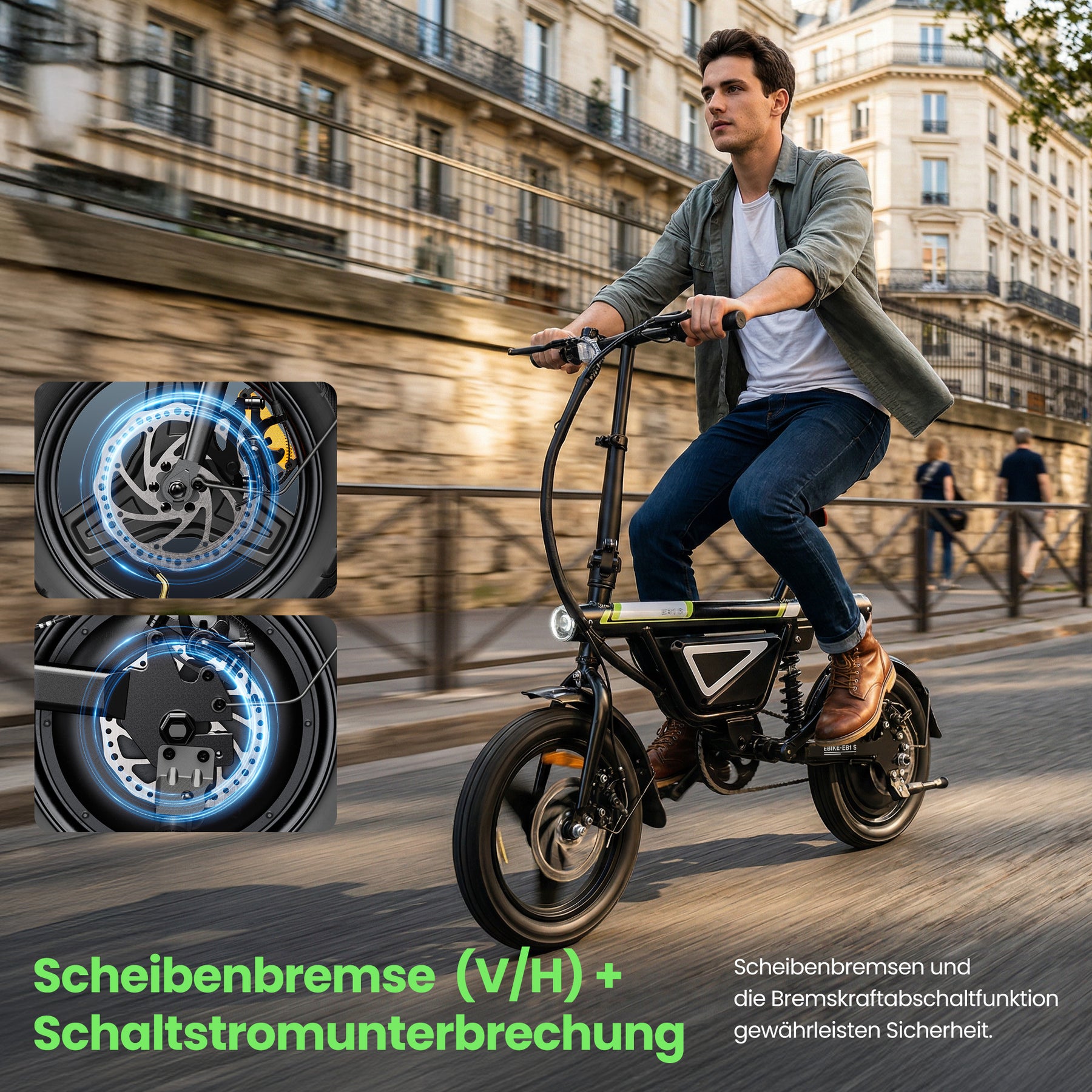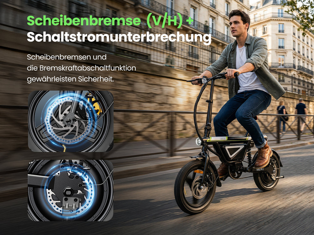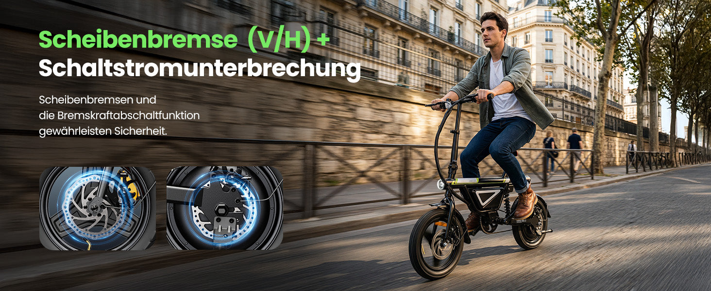 Scheibenbremsen vorne und hinten + Bremsabschaltung