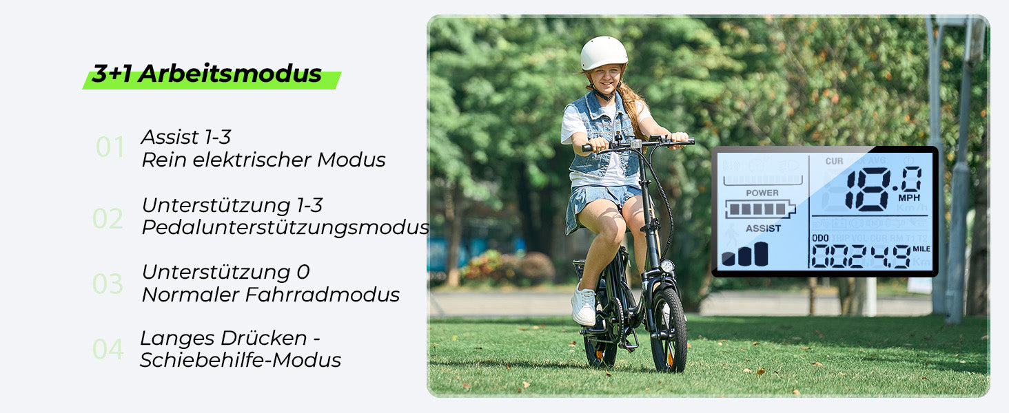 Vor dem Entsperren: 10/15/25 km/h Nach dem Entsperren: 15/25/30 km/h